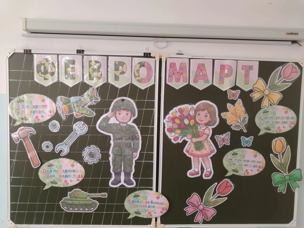 В 2 «Д» классе прошло яркое и запоминающееся мероприятие — праздничная программа «Февромарт». Это замечательное событие, объединившее в себе отголоски Дня защитника Отечества и Международного женского дня, стало настоящим торжеством дружбы, взаимопонимания и весеннего настроения.